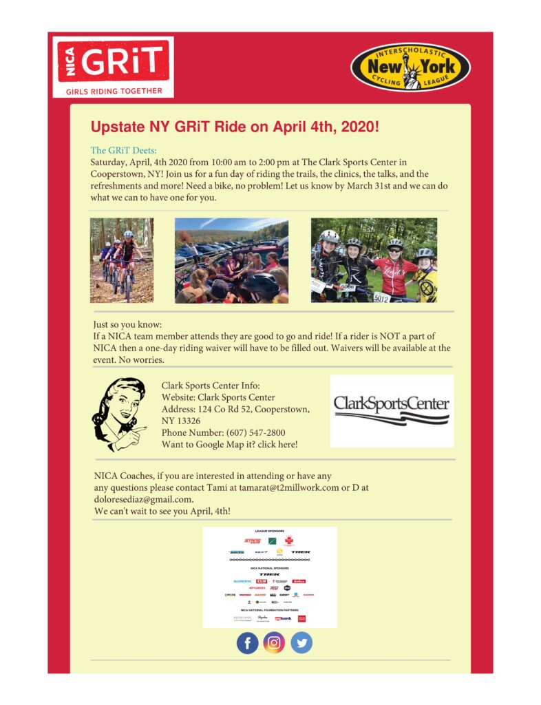 We want to increase girls’ awareness of NICA programs by offering girls-only social and riding opportunities for girls, moms, friends, siblings and female coaches. Day rides, GRiTty local businesses partnerships, GRiT Camps, and GRiT student-athlete Ambassador programs are just a few ways we are getting the word out about #GirlsRidingTogether.
